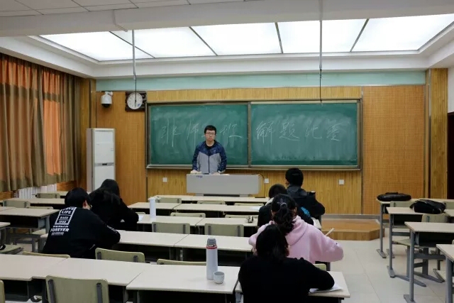 非师范班开展的特殊考试——解题比赛,是对阶段性学习效果的检验,也是对知识的巩固与应用。比赛采取班内同学命题,班内同学自主报名的形式,按照百分率方式设置奖项,充分调动了同学们的学习积极性与参赛热情。同时,考场纪律严格按期末考试执行,同学们沉着应试、诚信作答,最重要的是同学们从这类活动中中发现自己学习的漏洞与不足之处,能为之后继续努力学习做好准备与计划,锻炼了自我,也展现了自我。